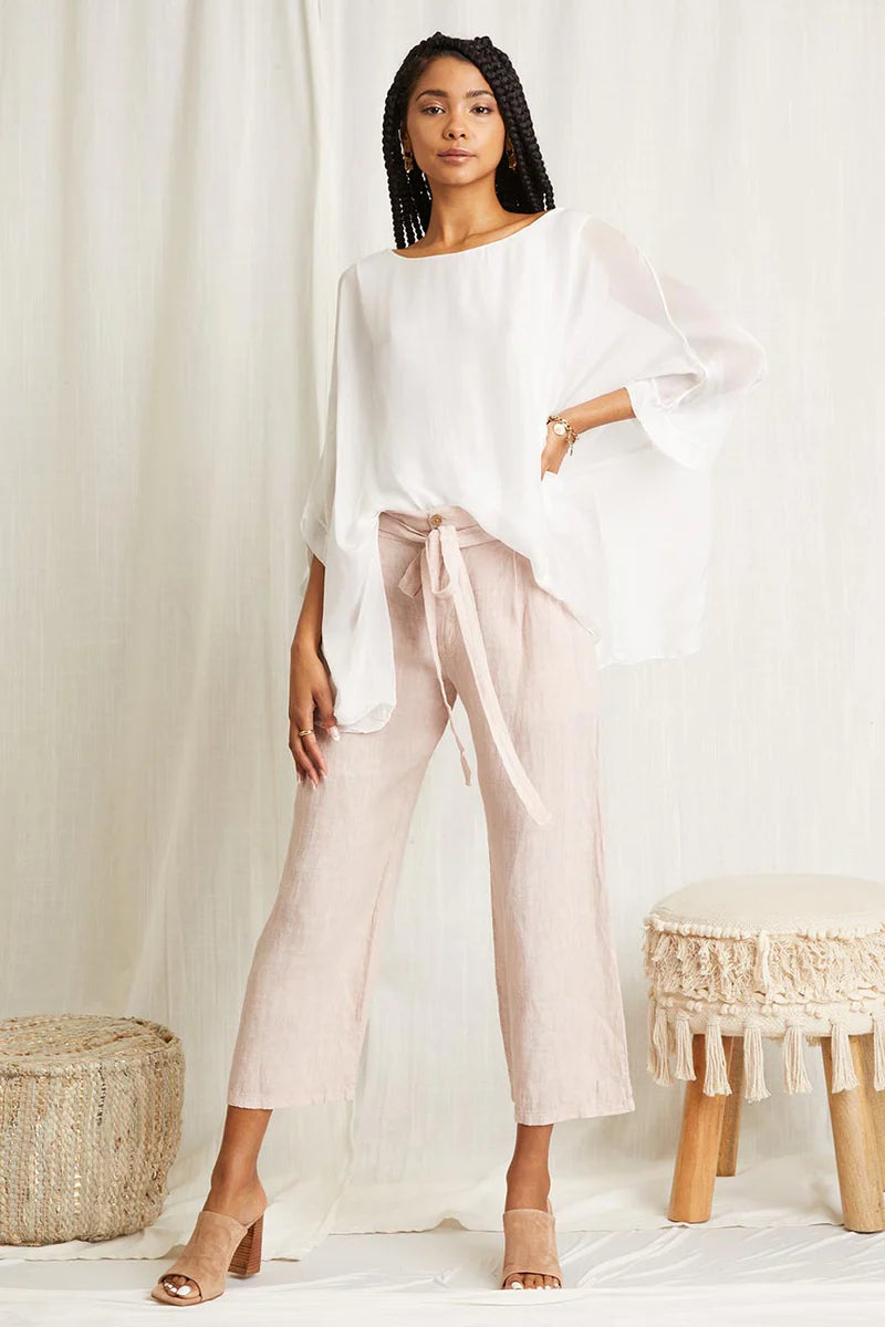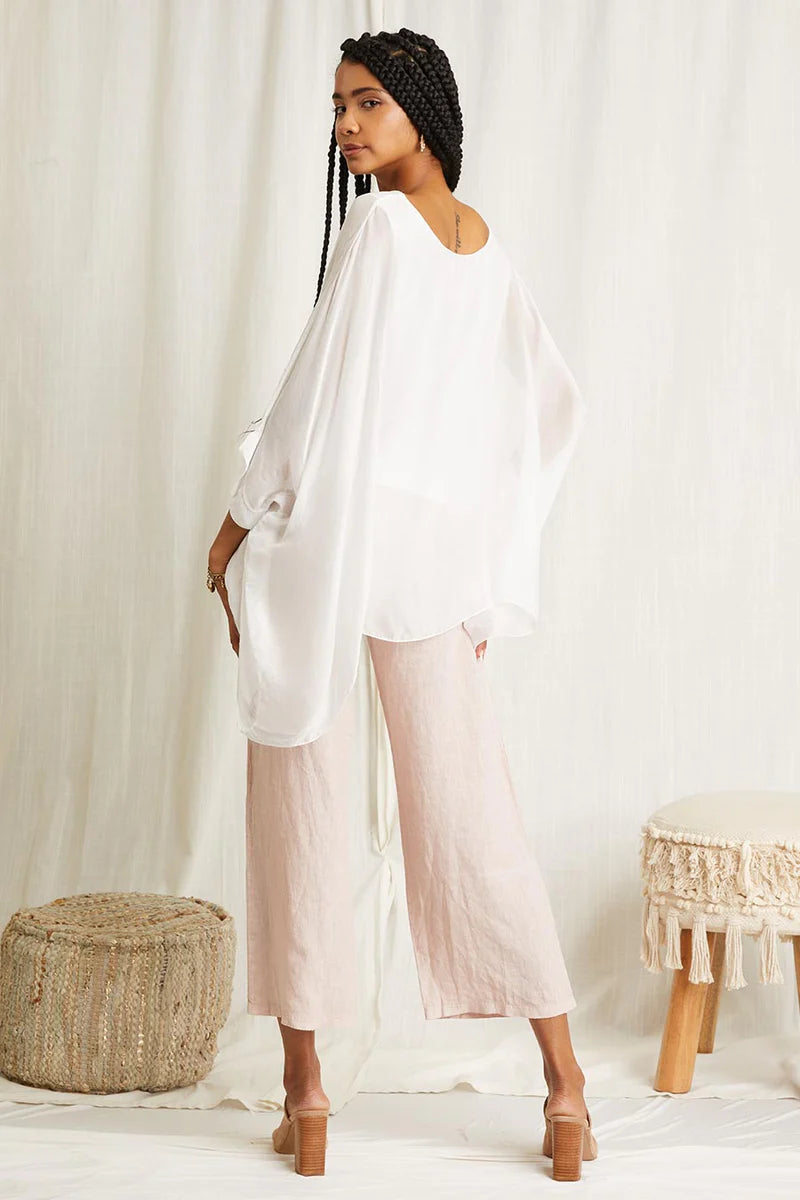 Paired beautifully with our silk pant style named "Free"; The Lav top has a hand dyed work that is unlike any other, with natural tones specifically chosen to be paired easily with any color, this silk top is sure to be a go-to piece in your wardrobe.