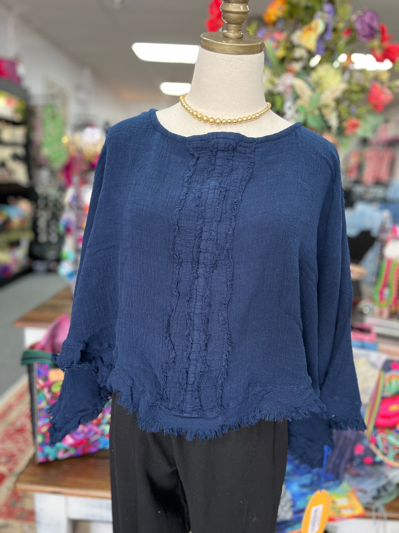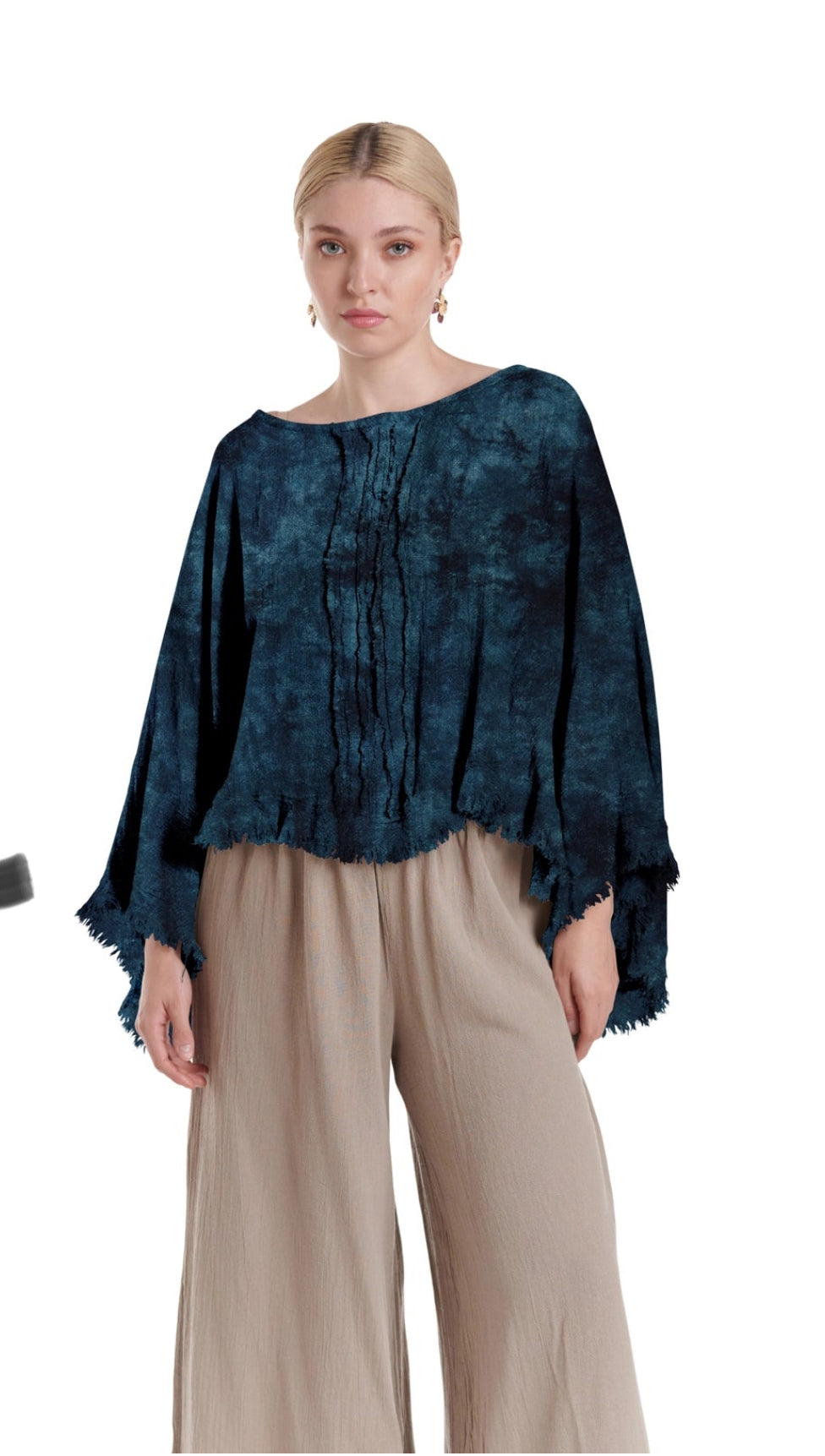 This Oh My Gauze Calypso poncho top is crafted from high-quality gauze material, featuring a unique raw edge and intricately detailed down the middle. Enjoy breathable comfort and effortless style with this versatile piece. Perfect for any occasion, from casual outings to elegant events.