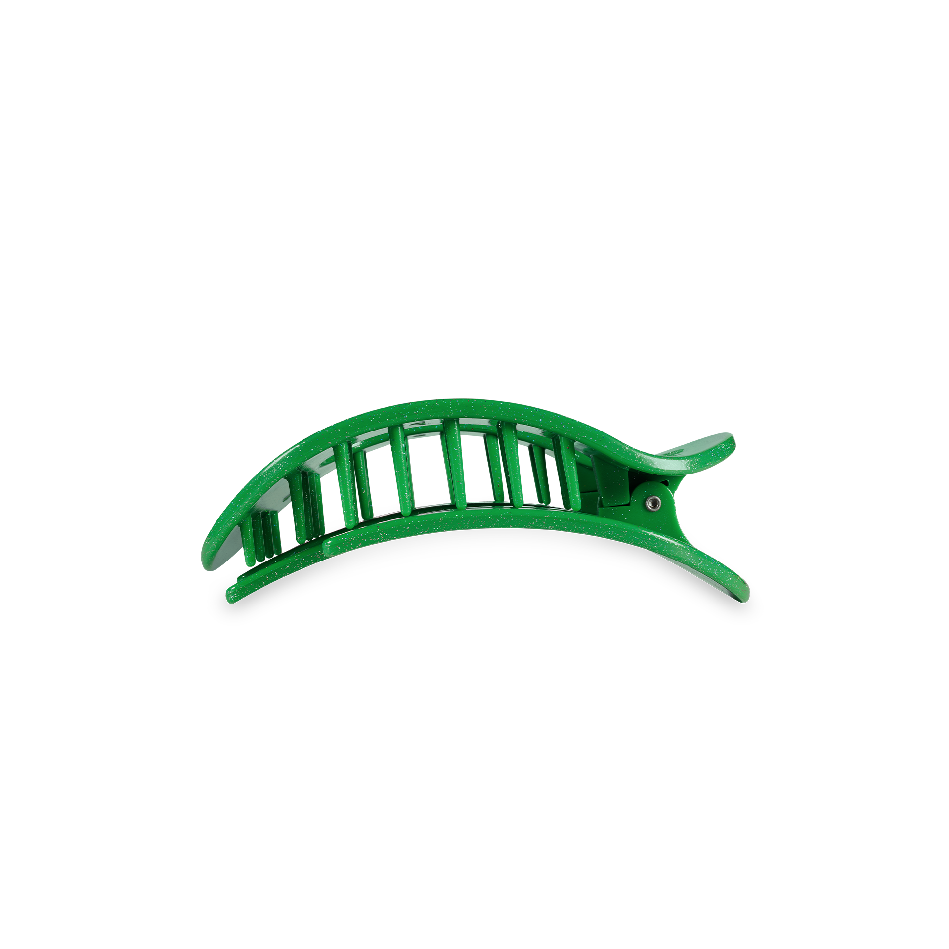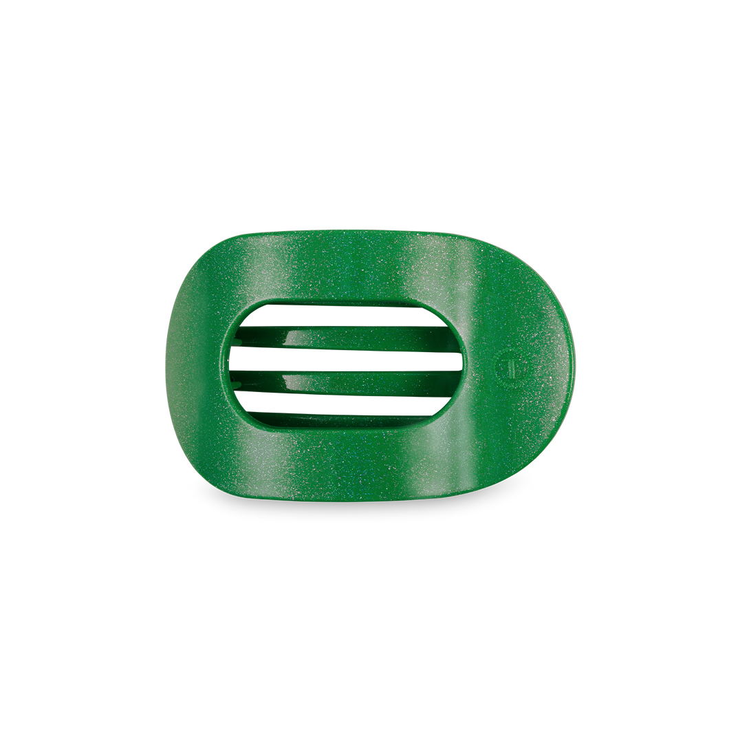 Lay flat and relax with the new TELETIES Green Shamrock Shimmer Small Flat Round Hair Clip. This hair clip is designed to allow you to lay back flat, do yoga, or sit comfortably in a seat with a headrest, and it is made with the same material that is nearly unbreakable.
